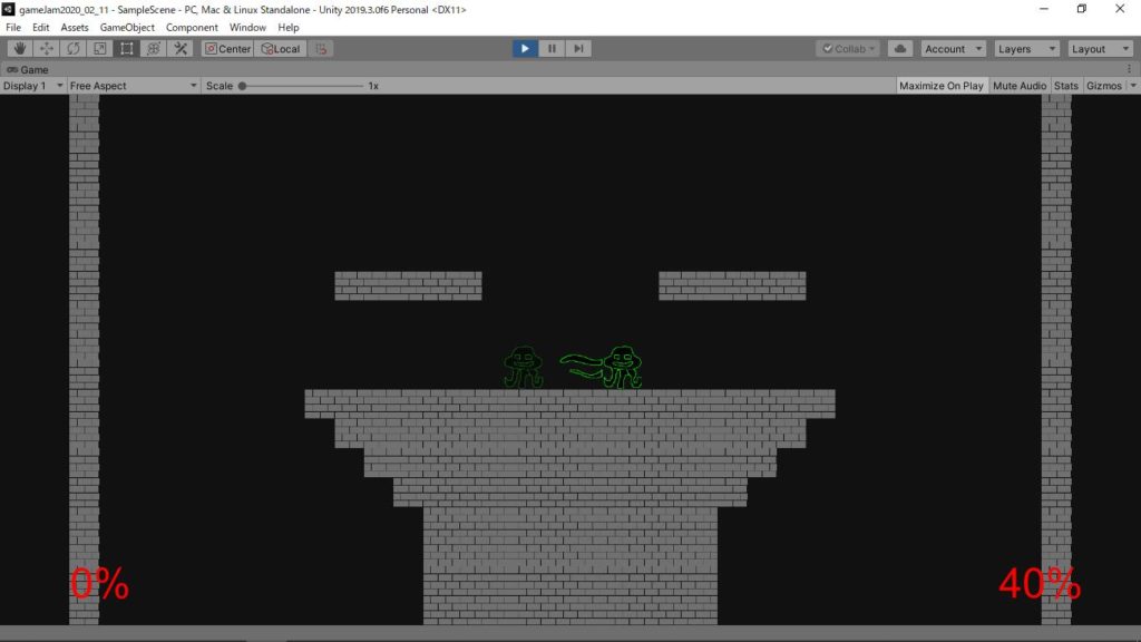 こんにちは、2年次のまんじゅうです。今回は2月11日(火)にゲームジャムを行いました。今回はいつもの個人作業では無く、ゲーム制作が苦手な人が主となって制作し、詰まったらペアの得意な人に助けて貰いつつ制作していく、ペアプログラミング形式(厳密には違う気がしますが)で行いました。