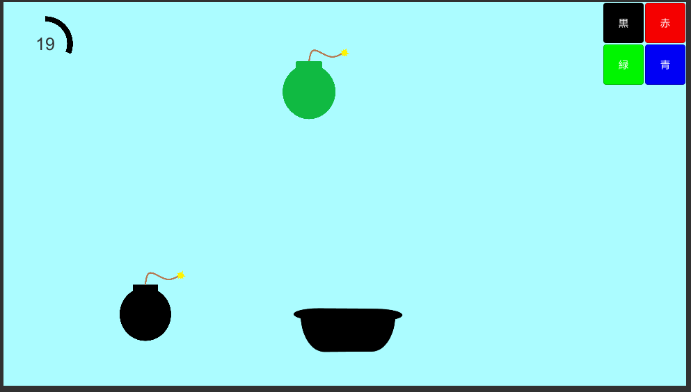 トレーと同じ色の爆弾だけ回収出来るようです。トレーの色は随時変えられます